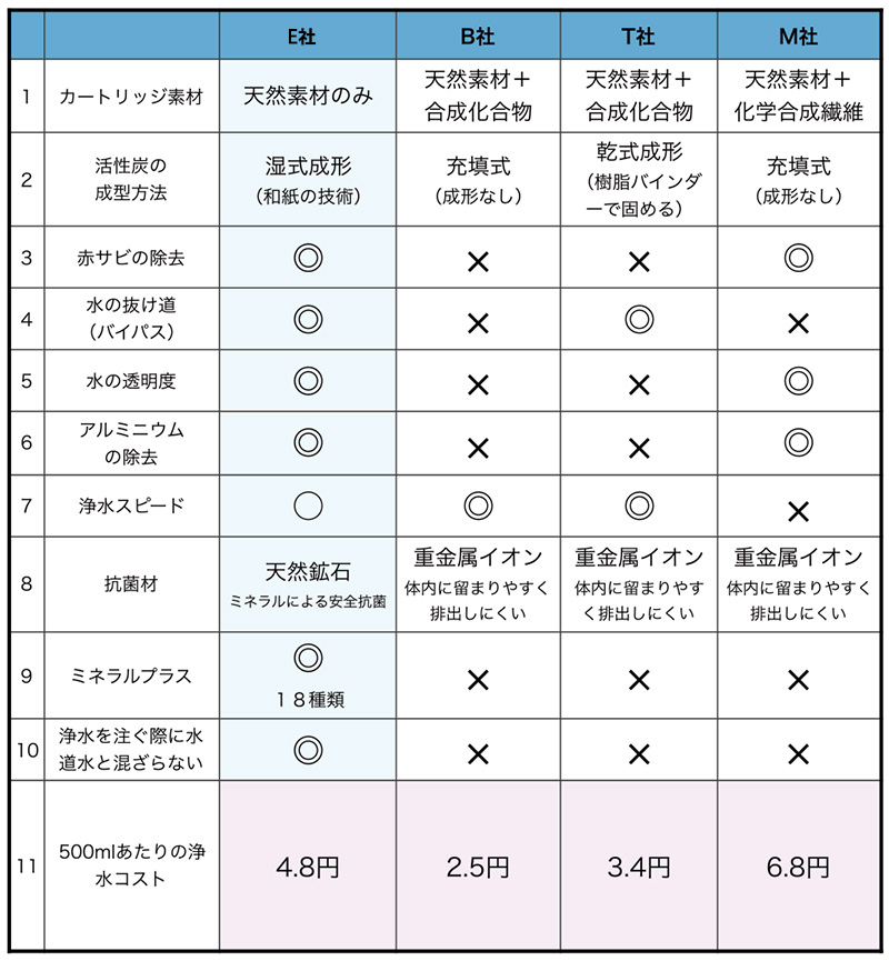 そのご提案をさせて頂く上で、私どもの知識と経験で各浄水器メーカーのスペック・安全性を個別に精査した中で、自信をもっておすすめできる浄水器をご提案させて頂きます。