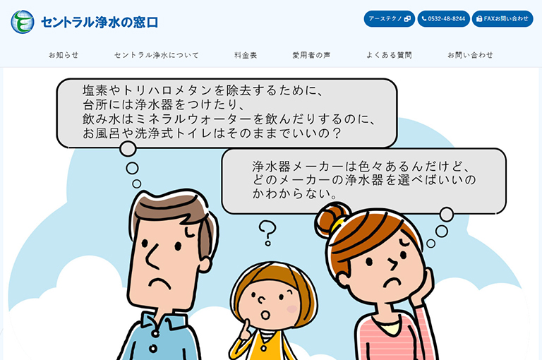 〒441-8105愛知県豊橋市北山町40-5TEL: 0532-48-8244FAX: 0532-48-8284営業時間: 9:00~18:00定休日: 日曜・祝日豊橋市で『セントラル浄水の窓口』では、健康や病気予防のための浄水器を販売しております。